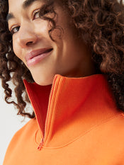 Classic heavyweight cotton ¼ zip with a ribbed collar and oversized fit for easy layering. Fleecy-soft on the inside and garment dyed in rich colors.