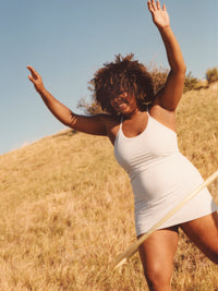 The original Outdoor Voices Exercise Dress. Designed for Doing Anything, this sporty, flattering, and functional dress features adjustable straps and a built-in shorts liner with side pockets.